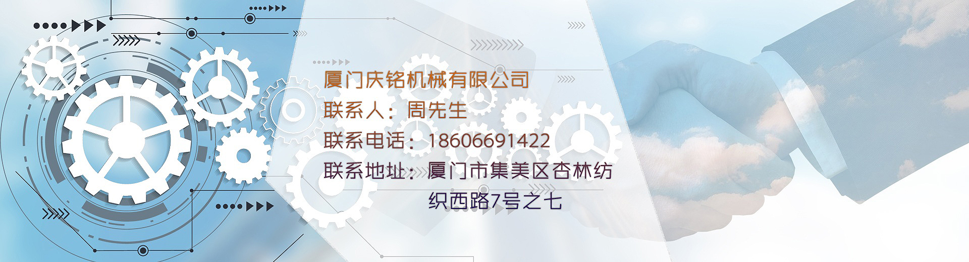 廈門(mén)慶凡機(jī)械有限公司為臺(tái)灣獨(dú)資企業(yè),創(chuàng)立于1982年。 制作大圓機(jī)心臟和傳動(dòng)零配件。供應(yīng)臺(tái)灣和大陸機(jī)械廠,至今三十多年歷史。經(jīng)過(guò)不斷的辛勤努力,2000年在大陸福建省成立了廈門(mén)慶祥銘機(jī)械有限公司,2015年公司改組為廈門(mén)慶銘機(jī)械有限公司。 創(chuàng)辦人的經(jīng)營(yíng)理念是以"不斷努力,誠(chéng)信經(jīng)營(yíng)"的精神努力地做好崗位的工作。?